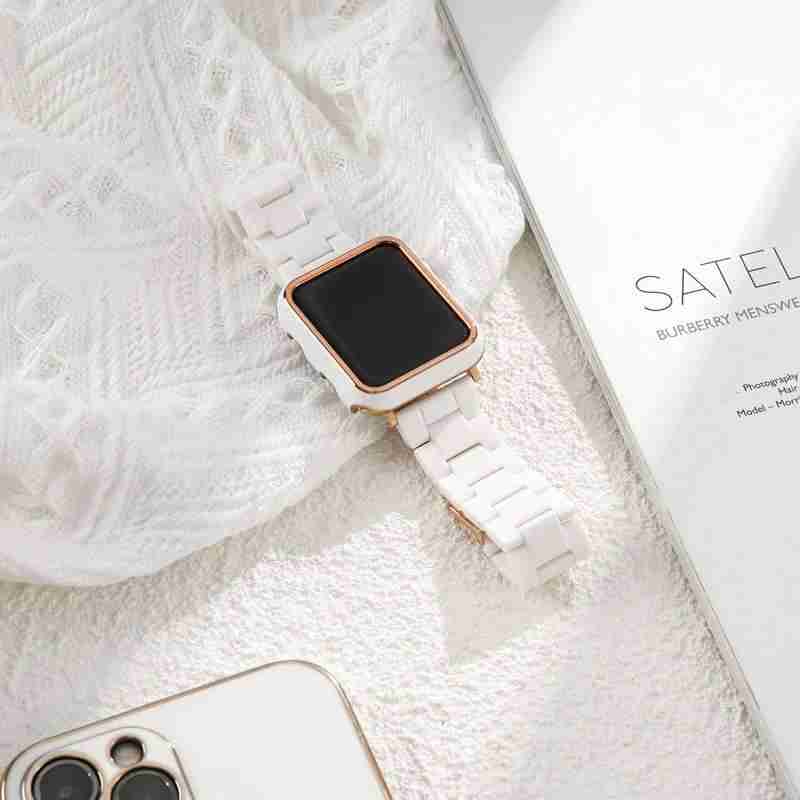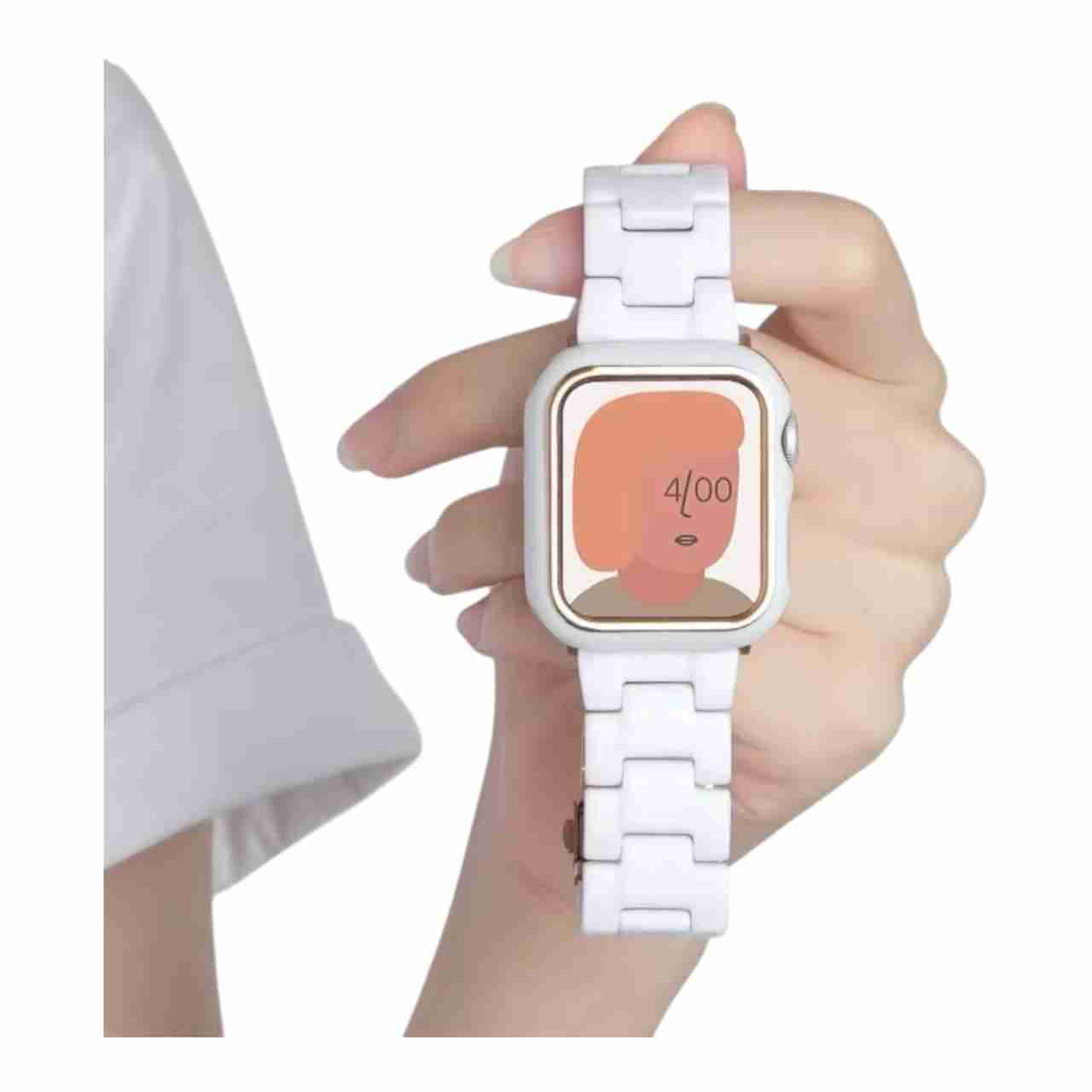 Banda de resina, bumper se vende por separado. Apple watch no incluido en el producto.